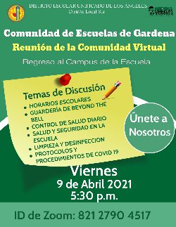 Gardena Community of Schools Townhall / Reunion de la comunidad virtual
